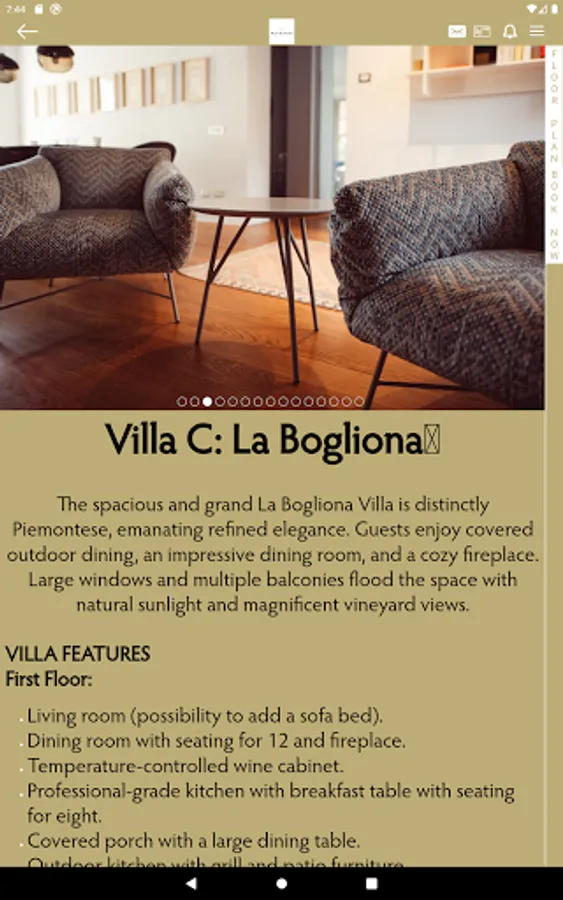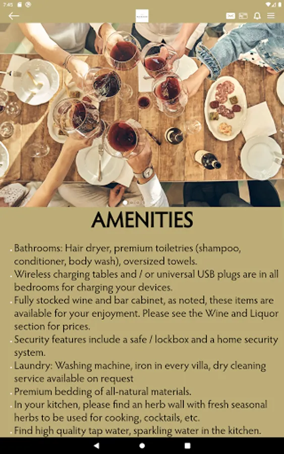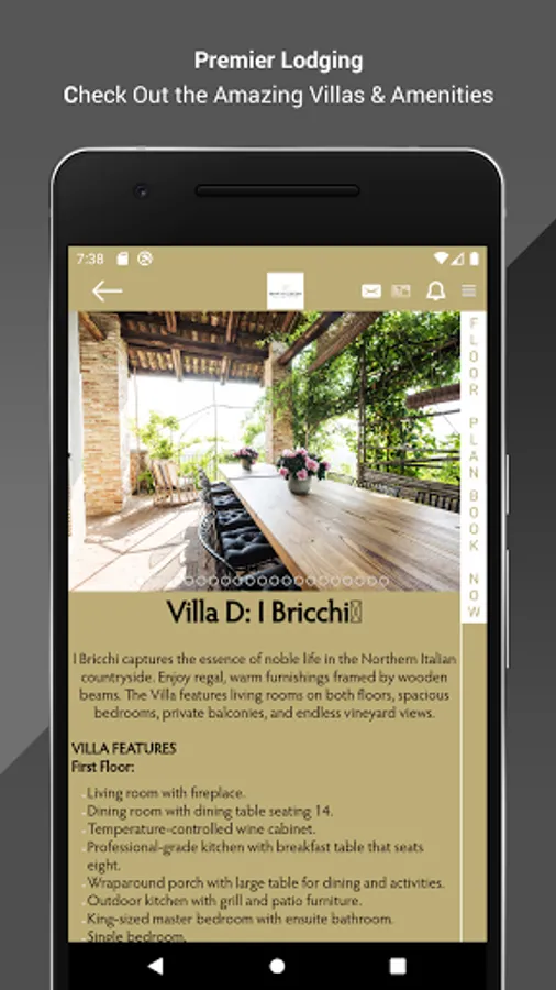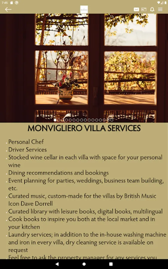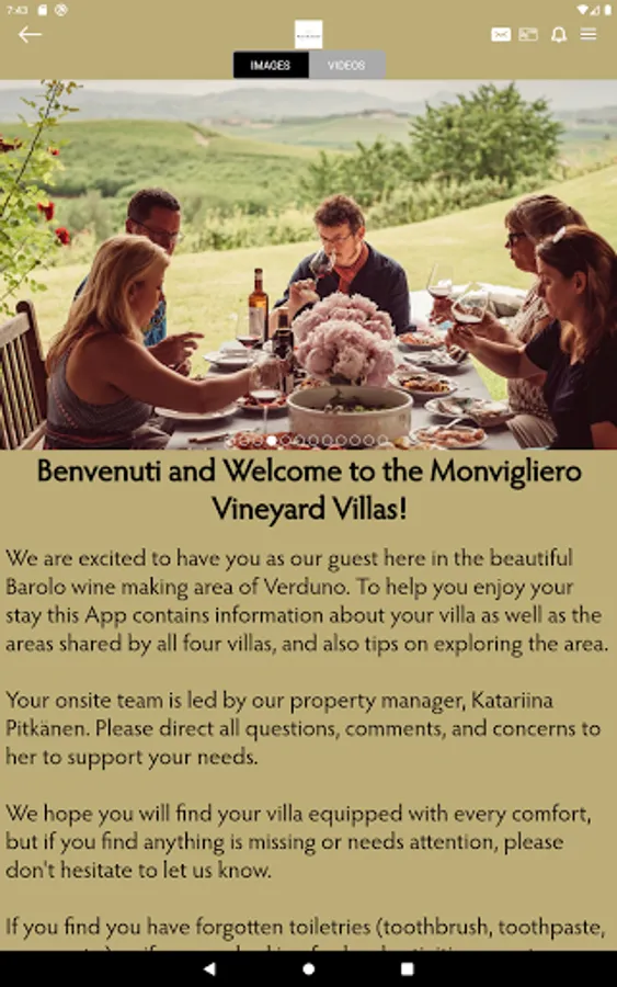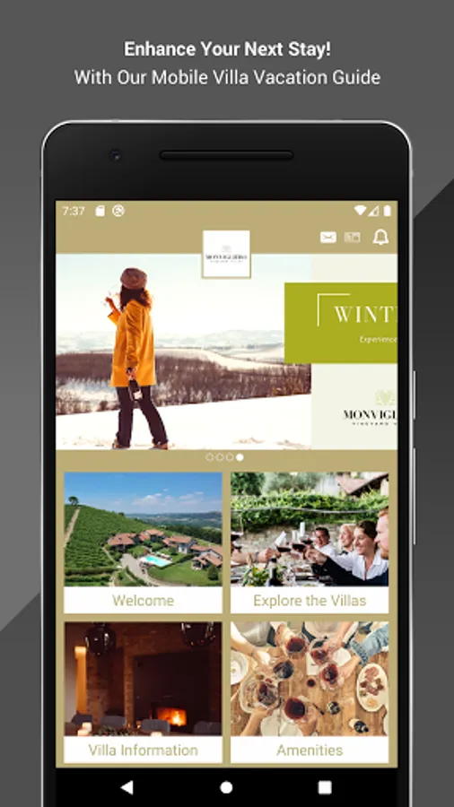The Monvigliero Vineyard Villas mobile universal Android app includes: