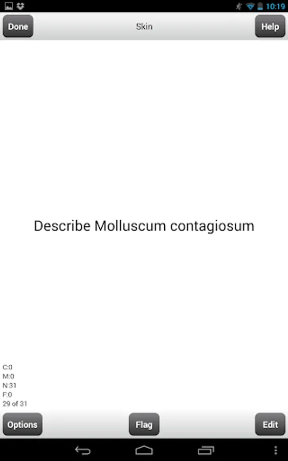 This is a fully functional version of COMLEX Level 1 Flashcards. It has only a few select cards for your evaluation. However, all options and features are active.