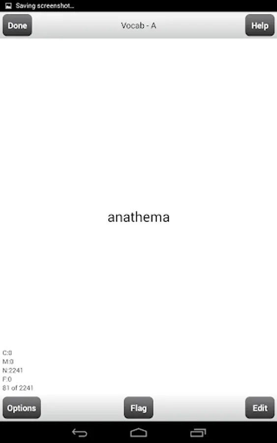 This is a fully functional version of SAT Vocabulary Flashcards for the SAT. It has only a few select cards for your evaluation. However, all options and features are active.