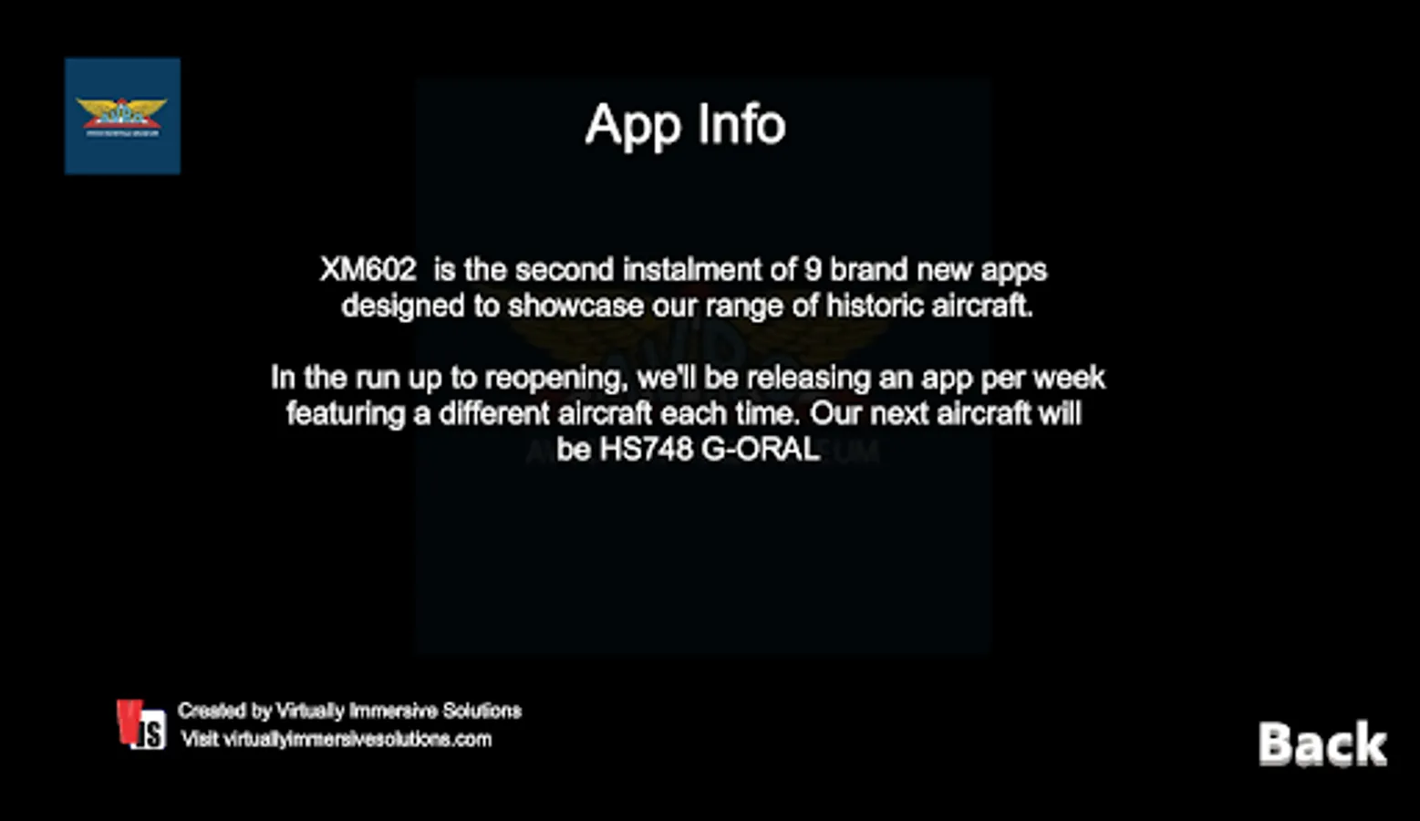 Take a look around the Avro Heritage Museum's Vulcan XM602. Immerse yourself in a VR tour around the inside of this iconic aircraft. Spectacular 360° scenes, aircraft history, picture gallery and information on how to support the museum. This is the second of 9 apps. We're releasing one per week to coincide with the museum's reopening.