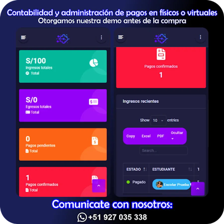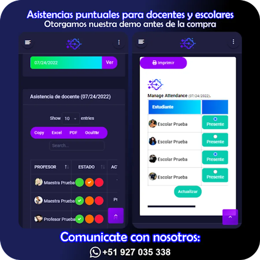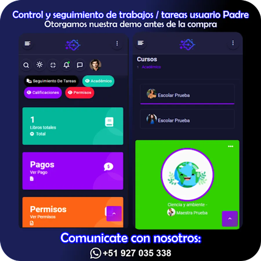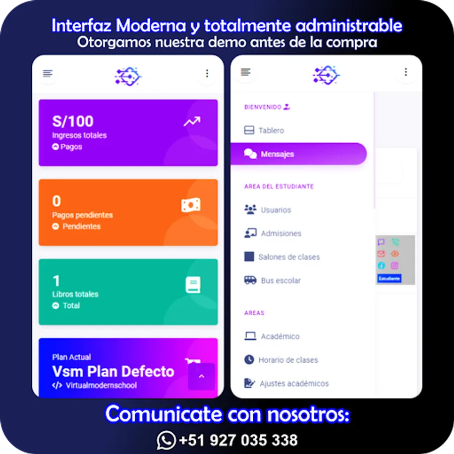 VMS: A platform made especially for the education area, it has all the modules, such as attendance, online exams, assignment submissions, cloud files, user synchronization with facebook / google, payments, bus, schedules, live classes , notifications and much more..