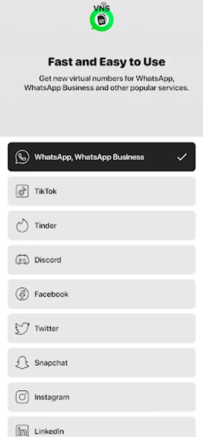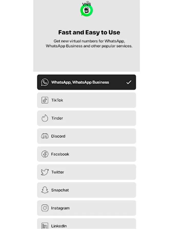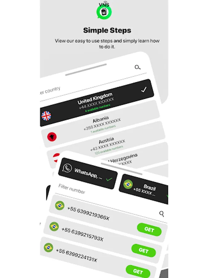With Virtual Number Service, especially WhatsApp, WhatsApp Business, Tinder, Discord, Google, Youtube, TikTok, Telegram, Signal, WeChat, SnapChat, Instagram, Steam and many more The service allows you to get virtual numbers from many countries.