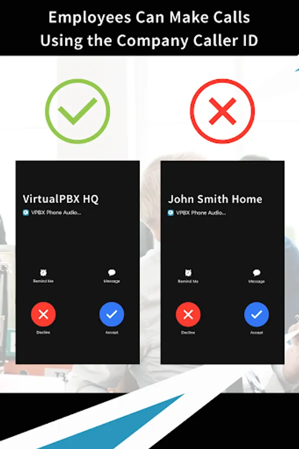 • Outbound calls use your company caller ID, instead of your personal phone number.