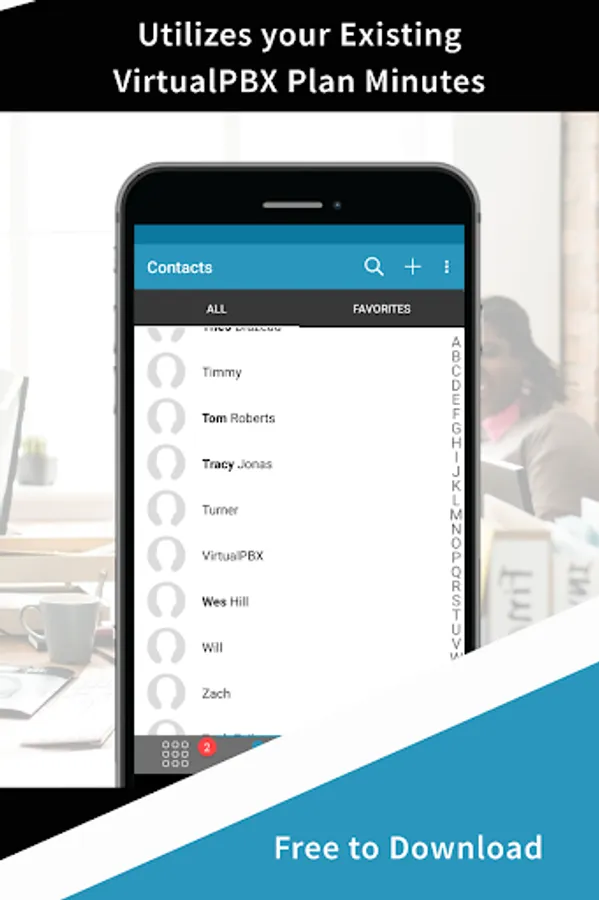 The VirtualPBX® Softphone turns your Android device into a full-featured VoIP phone in a VirtualPBX® phone system. You can receive and make calls over your data connection. Enable all of the high-end features available to VirtualPBX VoIP phones over your shared company system – without sacrificing personal minutes or caller ID. Audio compression is included at no added cost, providing high-quality calls with 4G, %G, or Wi-Fi.