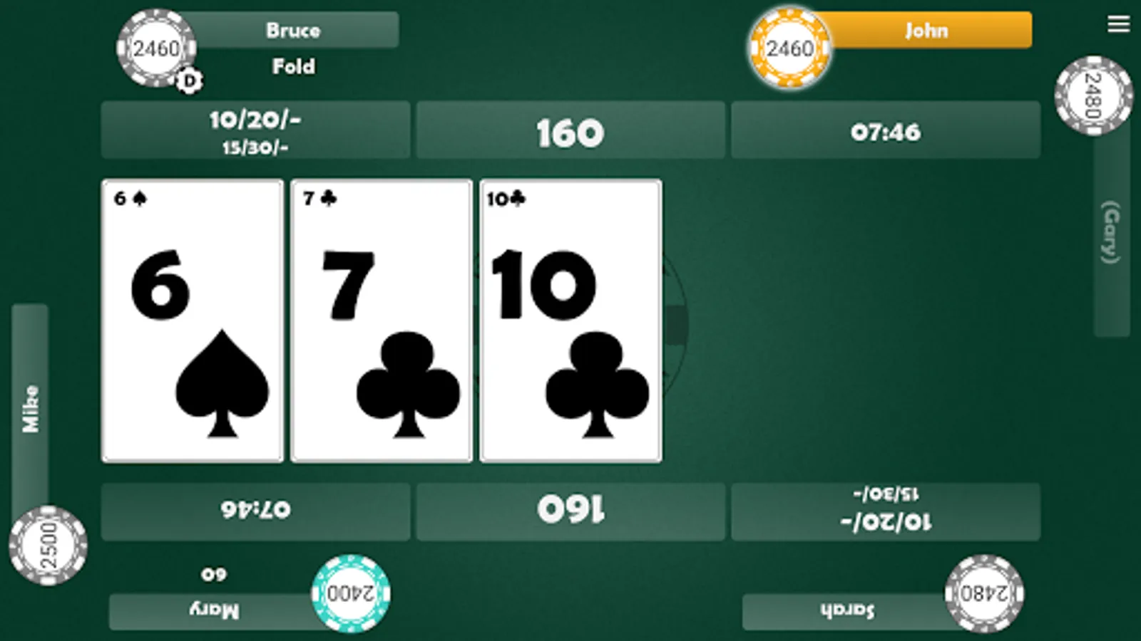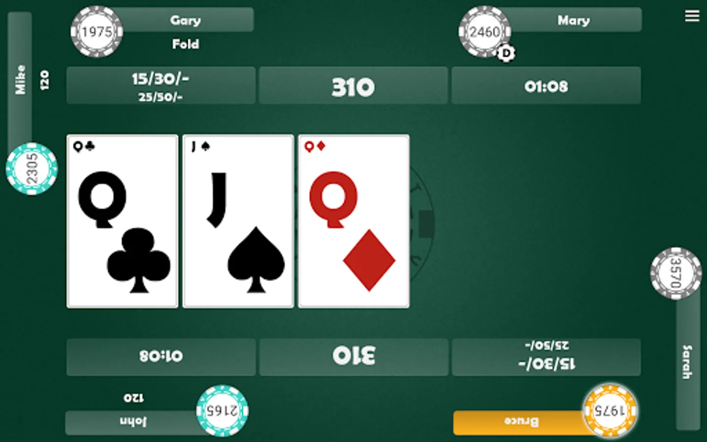 -- Double tap to check, fling your cards to fold
