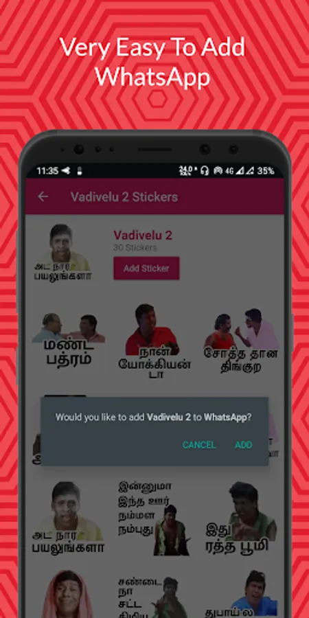 * Click "Add to whatsapp" button to add the sticker pack to whatsapp