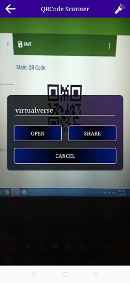 Scan any qr code bar code and save as text and share to any social media.