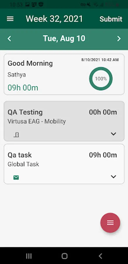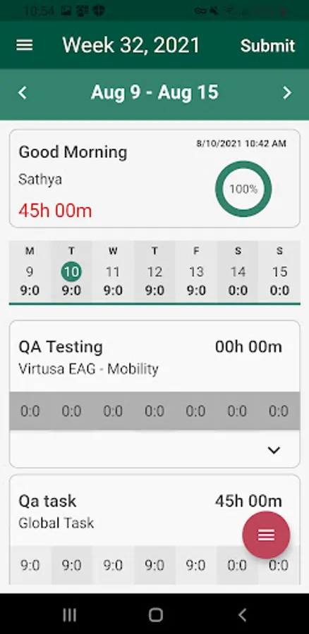 - Easily navigate across weeks, days and tasks and change time entered for tasks on the go