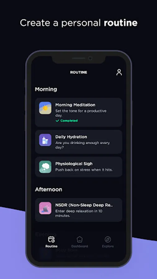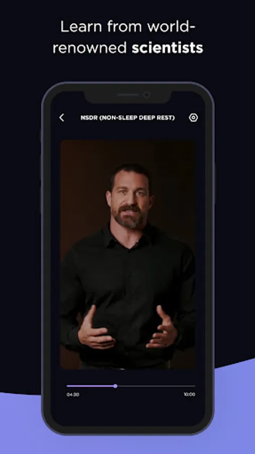 We've partnered with a team of expert scientists to deliver powerful content that actually drives behavioral change. Whether it's NSDR by Andrew Huberman, meditations by Shauna Shapiro, or learning about nutrition with Christopher Gabriel—check it all out for free in our app.