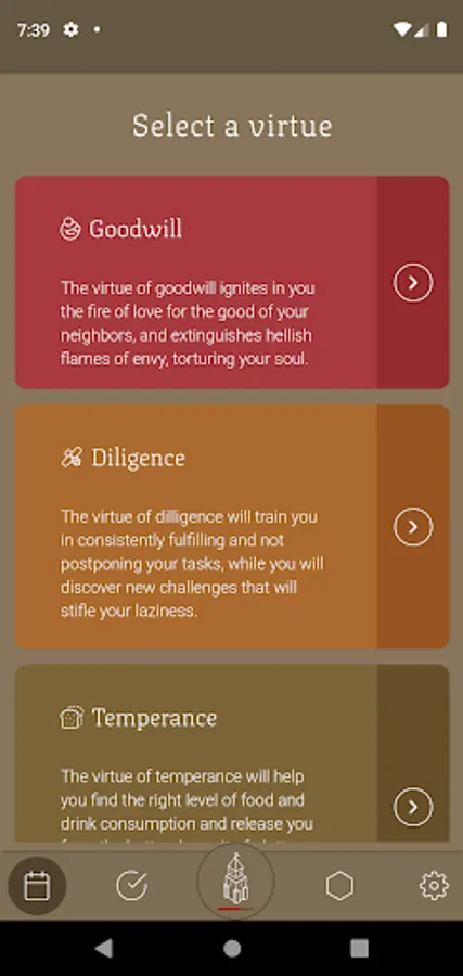 After subscription, you can continue after one week free trial with building of one of the 7 virtues, and complete the 30-day program without any restrictions. Every day you will have new tasks and knowledge that you will be able to use in your daily life. In the end of these 30 day challenge, you will receive a rating according to the degree of the castle of virtue that you have built within yourself. You can gradually build a castle of all 7 virtues and return to them repeatedly, because they contain a lot of valuable information and tips to improve your life. We recommend repeating some virtues, especially if they are close to your heart and you see a change in your life!