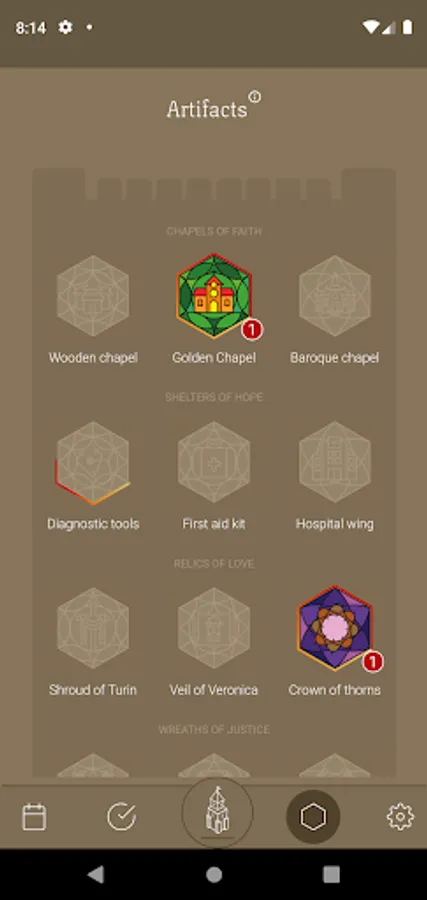 In order to be able to constantly improve your Castle of Virtues, you will be aided by 7 types of artifacts that you will be able to obtain for deserved deeds. Artifacts will help you to fortify and beautify some part of your fortress, with each species having three levels - from the easiest to the most difficult. With these artifacts you can enhance your castles of virtue even outside the 30-day program of building one of the 7 virtues, especially during the rest period after demanding monthly construction.