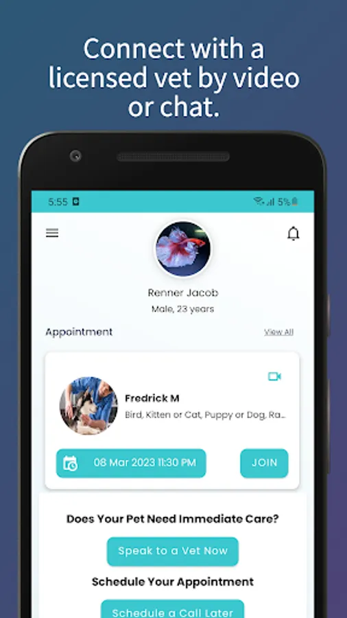 Your pet's health shouldn't wait, that's why VirtuVets connects you instantly with a certified Veterinarian on-demand, anywhere, anytime.