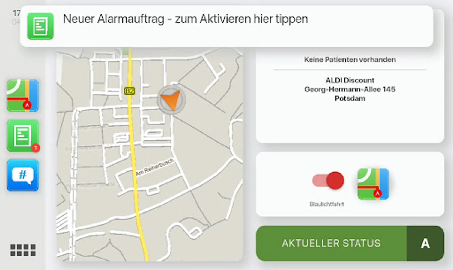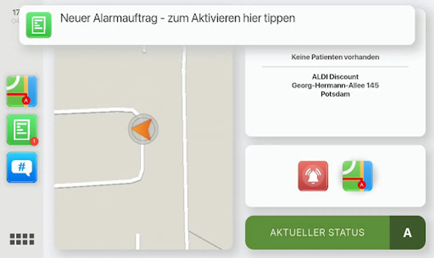 LvS OnBoard informs, navigates and logs. Incoming alarm orders can be navigated directly to the location. LvS-OnBoard is an application for the Android operating system and is integrated into the control center network service (LvS) and communicates bidirectionally with the control center.