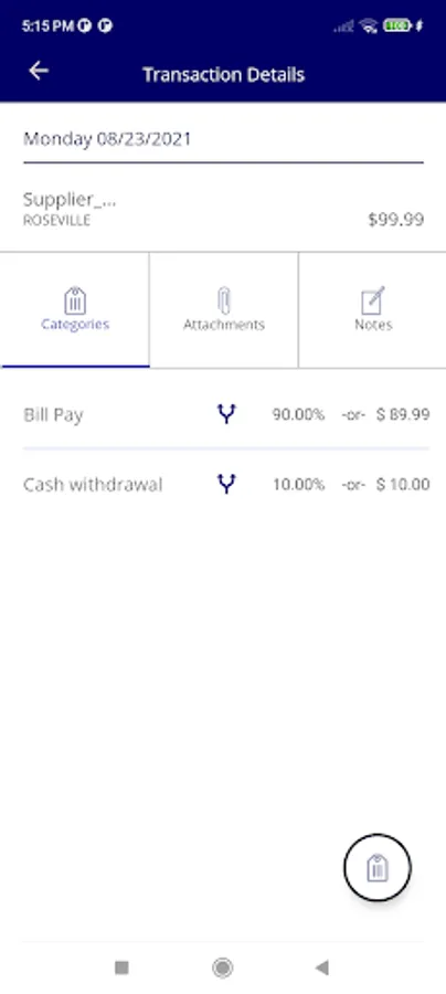 Split transactions by percent or amount and easily assign to multiple categories for streamlined organization and quick reference.