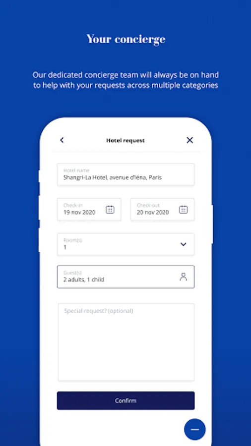 Your personal assistant is on hand to organise everything from your everyday needs, to your special occasions and to your tailor-made holidays. Ensuring you have the time to relax and enjoy each special moment. Whatever your request and wherever you are in the world, you Concierge will be waiting to assist you. Visit the ""Make a Request"" section to find out more. "
