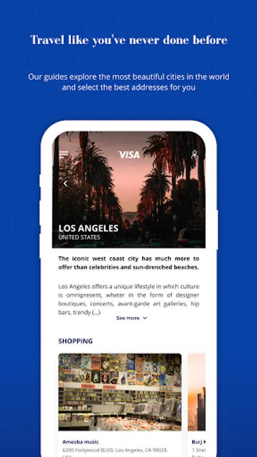 Take advantage of the extensive network of partners and exclusive privileges and let yourself be guided and inspired to discover new adventures. Search by location (16 City Guides available from around the world) and category: shopping, culture, travel and gastronomy. Visit the ""Privileges"" section to find out more.