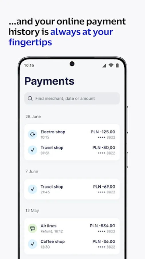 You will certainly appreciate the fact that, thanks to new technological solutions used in the app, such nuisances as the necessity of clicking your way through multiple windows or copying and pasting texts have been eliminated. All you need is to authorize the payment on your smartphone.
