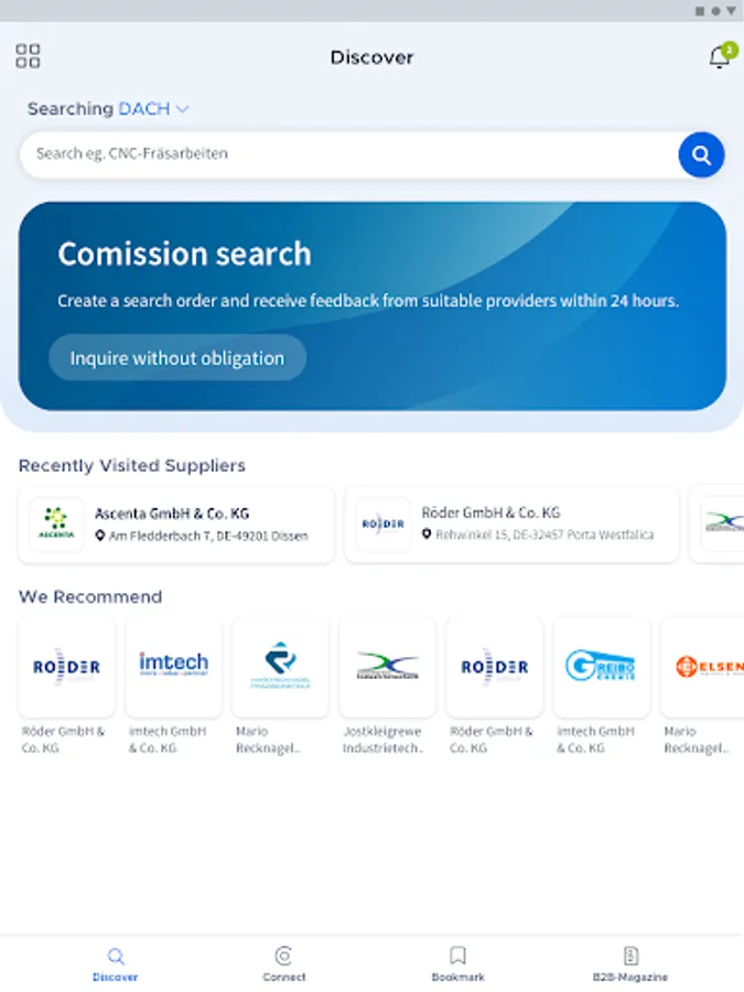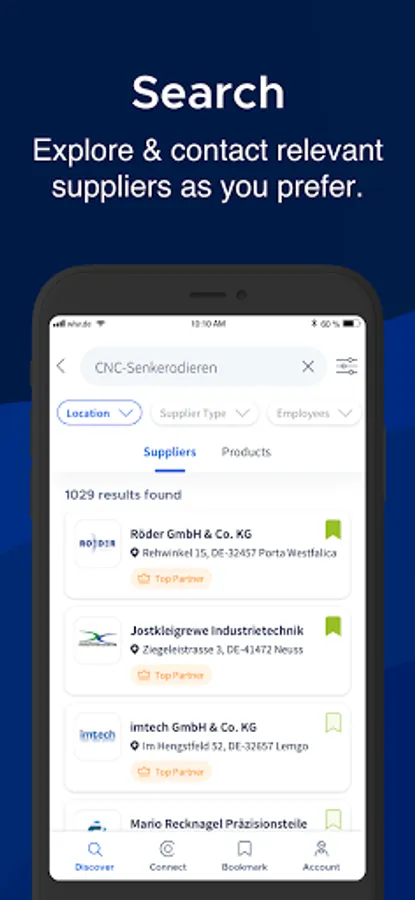 Our B2B app is more than just a simple supplier app. The precise and simple search gives B2B purchasers a wide range of reliable information on companies and their product portfolios at any time, including current contact details and prices.