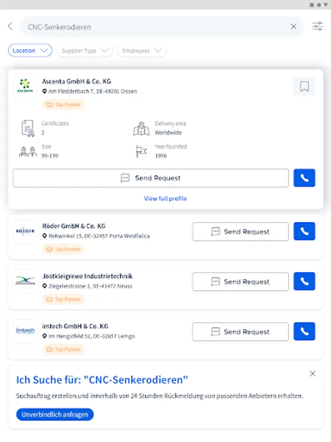 - Search for and research suppliers, manufacturers, retailers, service providers and B2B products in your vicinity or at any location