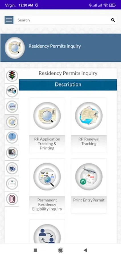 4.Residency Permits inquiry: RP Application Tracking & Printing, RP Renewal Tracking, Permanent Residency Eligibility Inquiry, Print Entry Permit, Change Employer Application Enquiry.