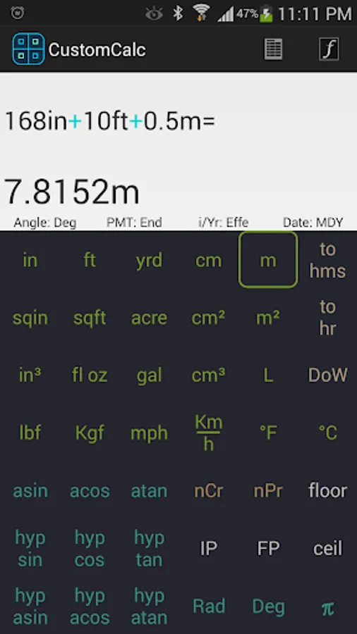 - Unit Conversion functions, assign any button with any unit (Length, Area, Volume, Mass, Force/Weight, Pressure, Temperature, Power, Speed, Energy/Work) and execute it in one touch.