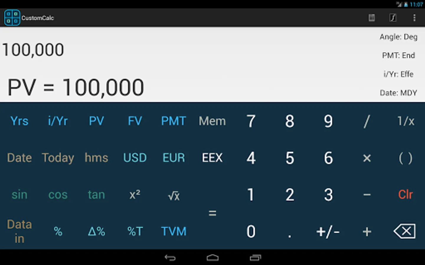 CustomCalc has a very user friendly interface so just about anyone can customize this Business, Financial, Scientific, Engineering, Binary, and Statistics calculator. Select RPN mode if you like HP RPN, or select Algebraic mode with a unique intelligent parenthesis button, complementing an outstanding array of built-in functions and features. Redefine the whole keyboard to customize it in pretty much any way desired. Qualified by customers as the best replacement for HP's scientific and financial calculators (HP12C and HP48) and the best alternative to a scientific calculator.