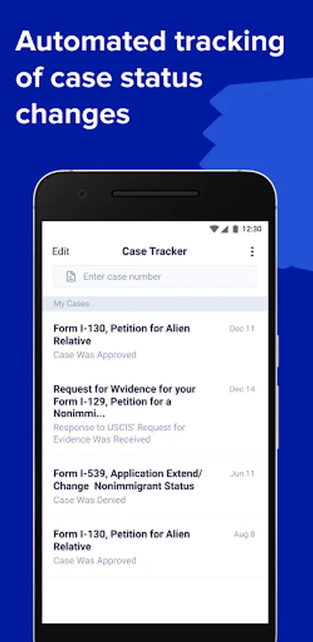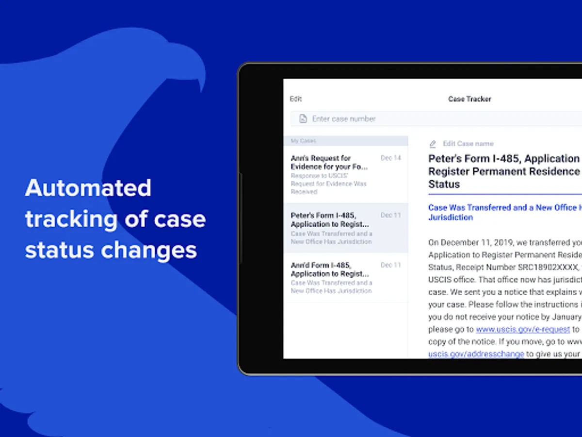 Push notifications on your phone —When any of your cases is updated by the USCIS, you will promptly receive a push notification on your phone. Now you don’t have to worry about missing important news.