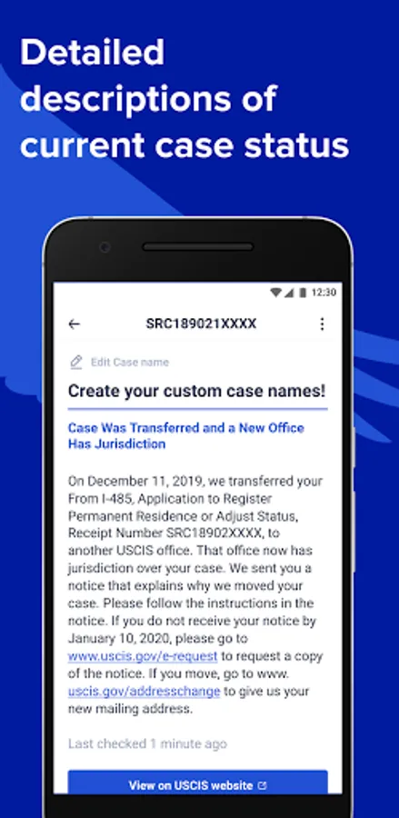 Detailed descriptions of current case status — The app provides the complete current USCIS status on each case, and you can proceed to the relevant USCIS page in just one tap.