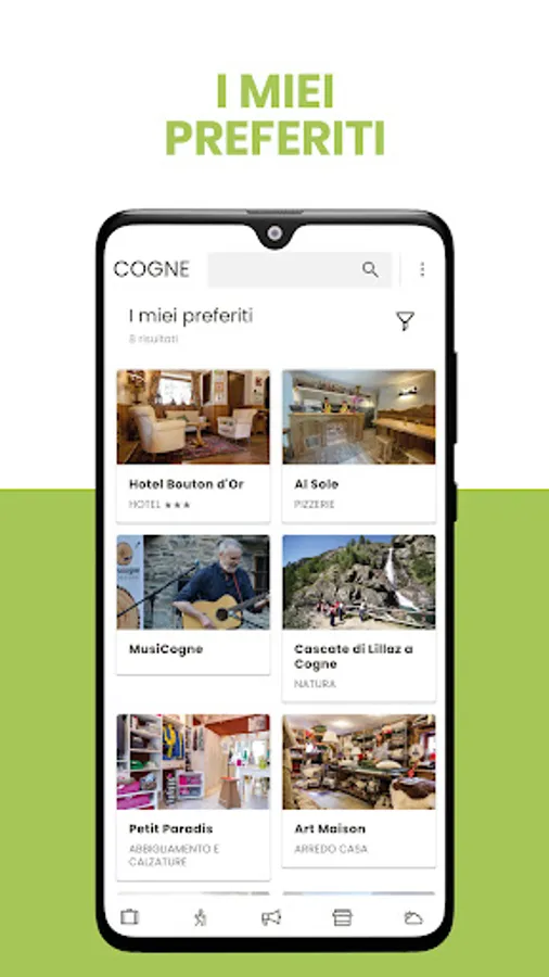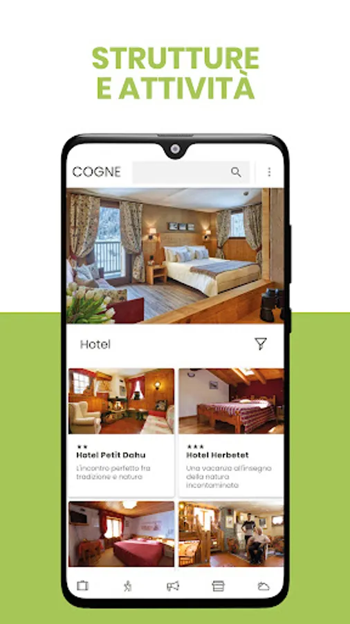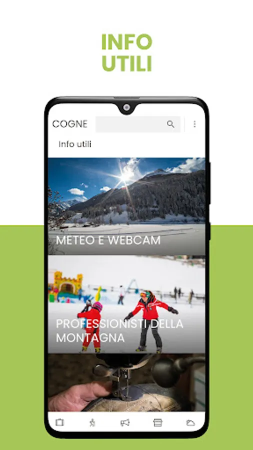 The VisitCogne App was created to offer guests a new tool to easily navigate all the information useful for organizing and enjoying their stay, making full use of the potential and usefulness of a mobile application.