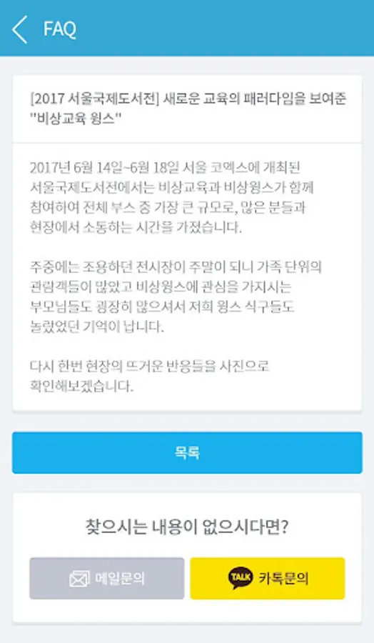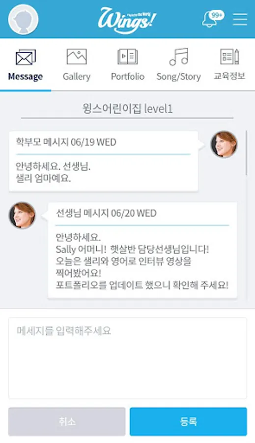 Emergency education Wings use digital contents to play with English teacher in kindergarten and daycare. Parents can check the portfolio created by their children through this Wings APP and see how their children are living in kindergarten through the gallery.