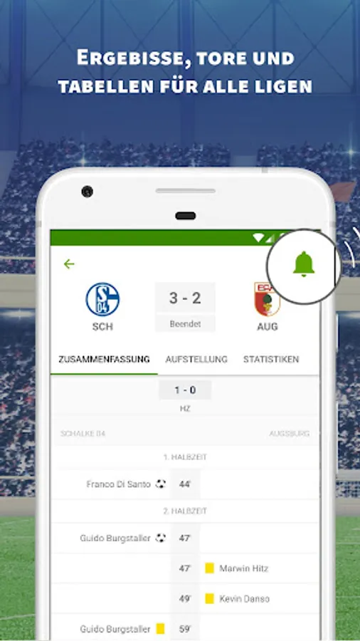 Download the free live Ticker.com-app and follow the football results of your favorite leagues. Do you want to know when your team has scored a goal when only a few minutes until the final whistle and whether your opponents lose their game and stay in the table? With so many Live-Ticker.com you can set up alarms as you like, and receive updates from the games that interest you the most.