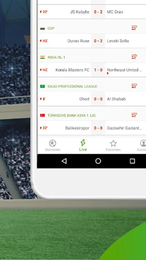 Charging Live-Ticker.com free and follow live results of your favorite leagues and teams.