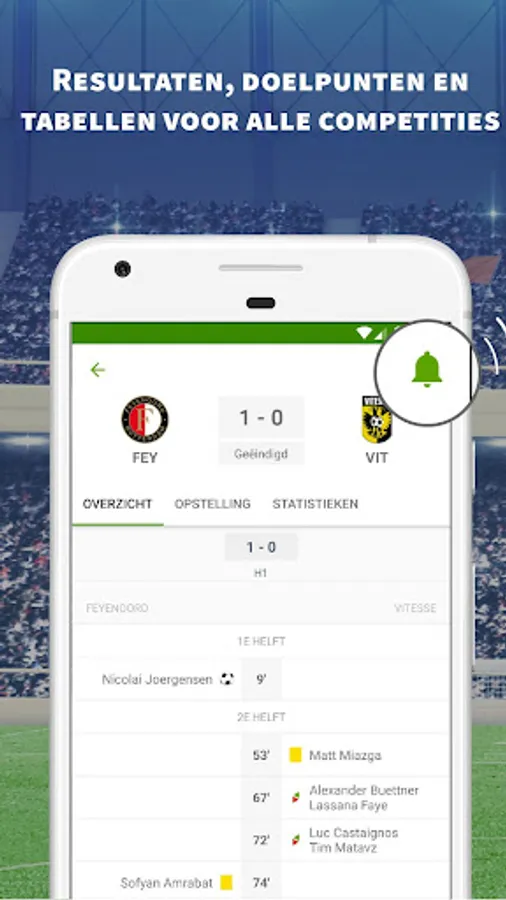 The WatIsDeScore.com app keeps you've set via alerts and push notifications constantly informed of the latest goals and results of the leagues and teams that you as a favorite.