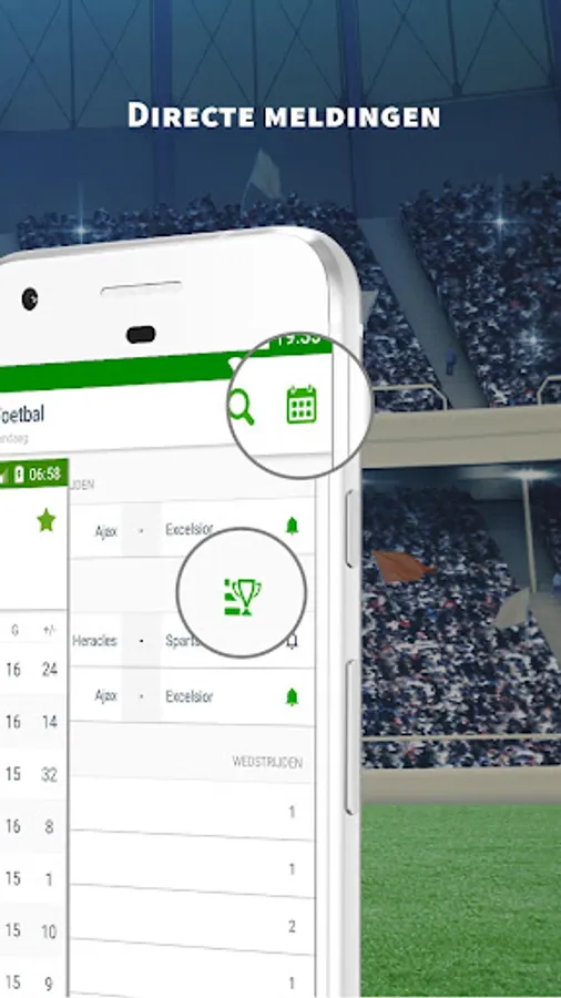 Download the free app WatIsDeScore.com and follow all the football results from your favorite leagues. Want to know if your team has scored just before the final whistle and if your rivals lose the game and have to cede their place in the league? WatIsDeScore.com lets you set as many alerts as you like and send your updates of the matches in which you are interested.