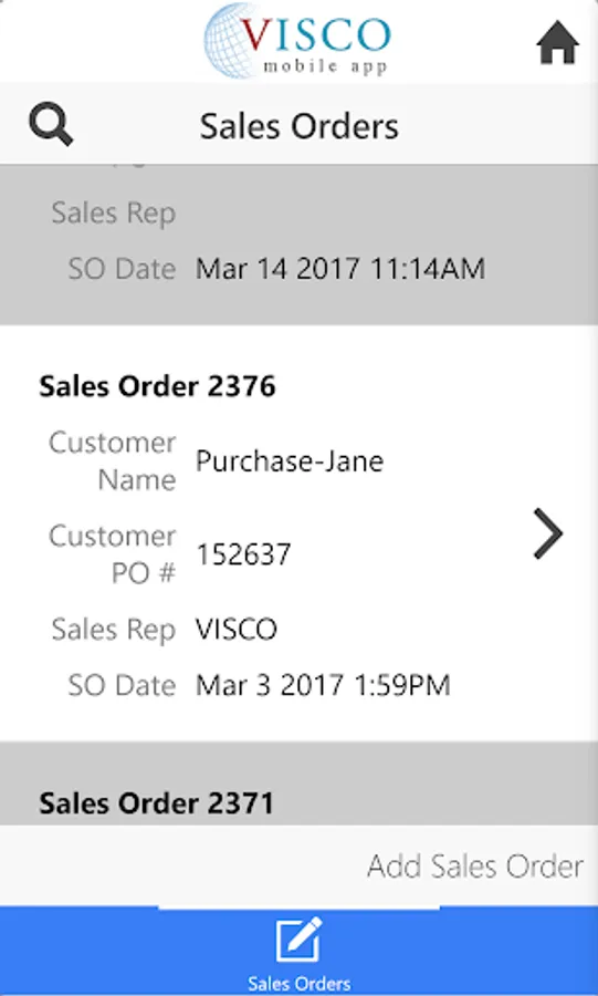 This app focuses on CRM and Sales functionality. The app has been designed for existing VISCO customers to take advantage of various sales activities against their live VISCO data while "on the go." Base modules in the app include CRM with Inquiries and Quotes, Sales Orders and Inventory Lookup, but more modules can be added by request. The possibilities are endless!