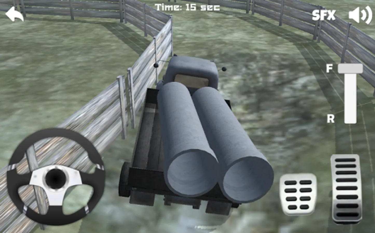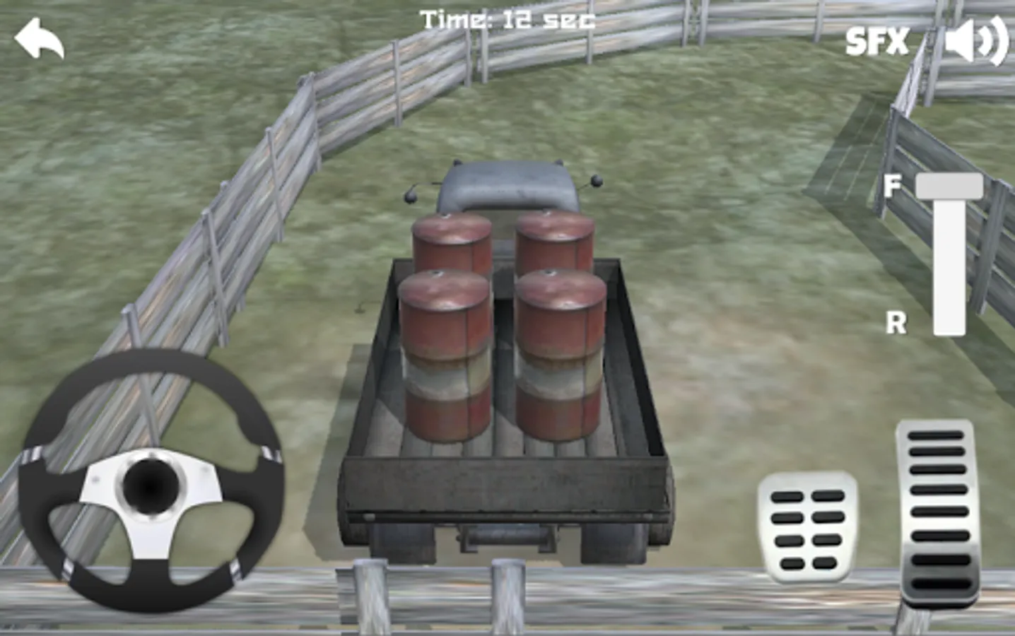 You can move truck left and right by turn and drag steering on screen. There is an accelerator paddle to move truck in forward and reverse direction by switching gear slider to up and down respectively and brake paddle to stop the truck. It works the same way as switching engine sound on or off.