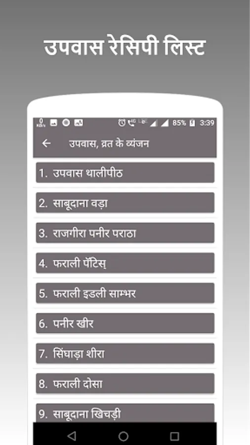 There are Many Fasting (Upvas And Vrat) Recipes describes in this application.