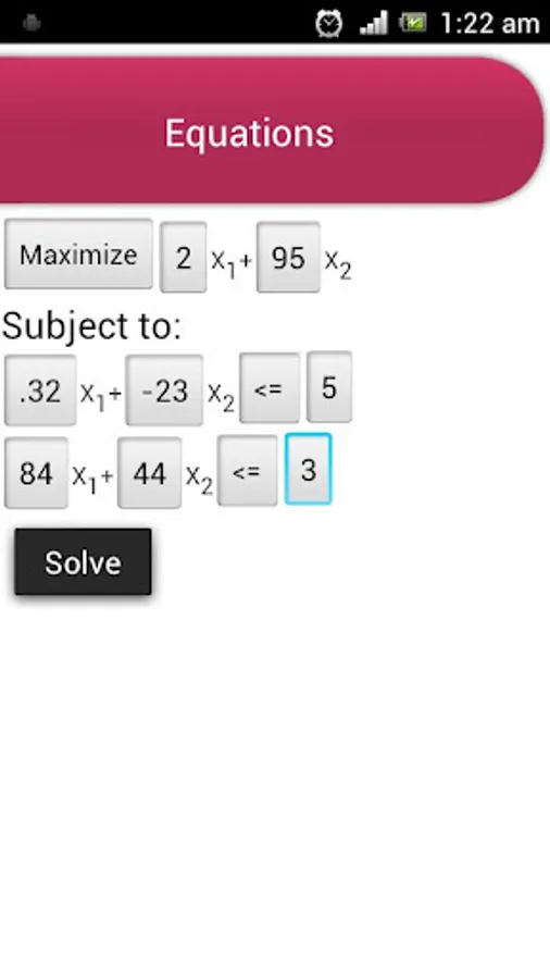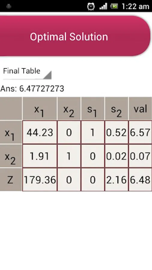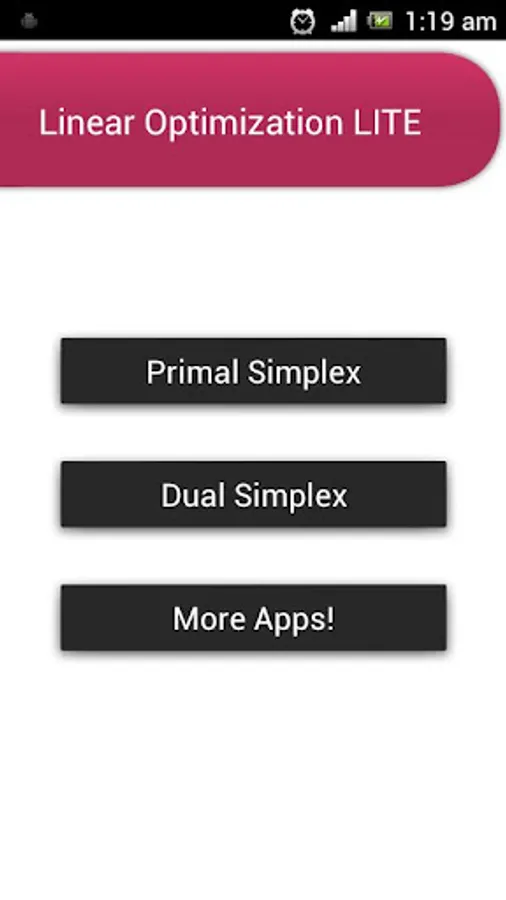 This app solves the linear optimization problems using primal simplex method and dual simplex method.