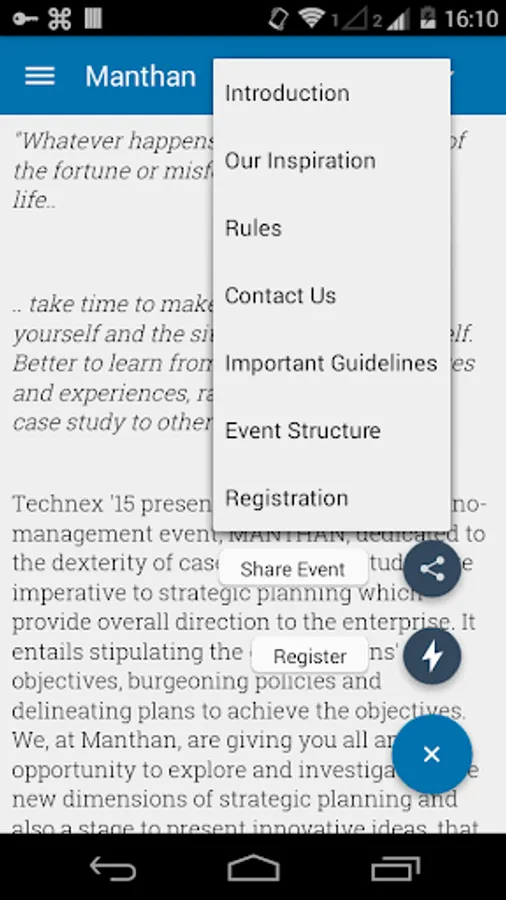 Technex, the annual techno-management festival of Indian Institute of Technology (BHU), Varanasi and one of the grandest college spectacles, draws enthused participants from all across the country. To conform to the demands of the soaring enthusiasts and justify the grandeur of the event, this year we bring you Technex on Android.