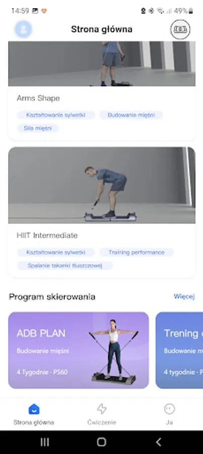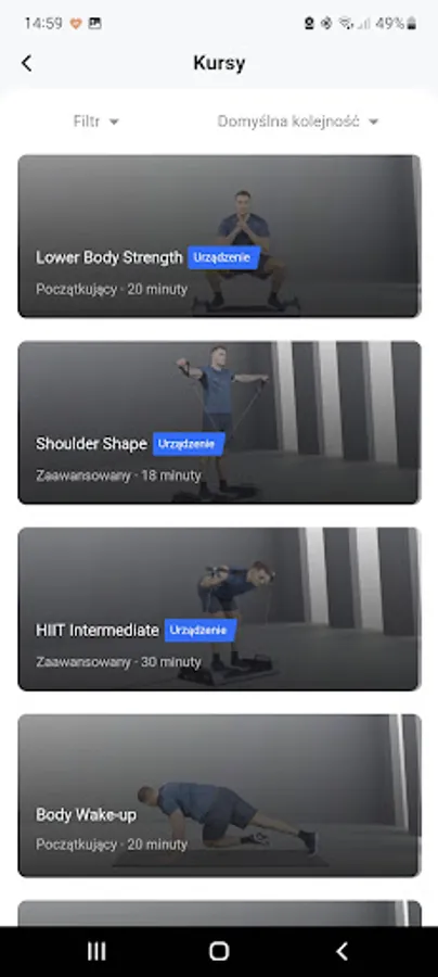 By using the impressive database of developed training courses, you will ensure the effectiveness of the exercises performed. Each course consists of a warm-up, proper training and cool-down.