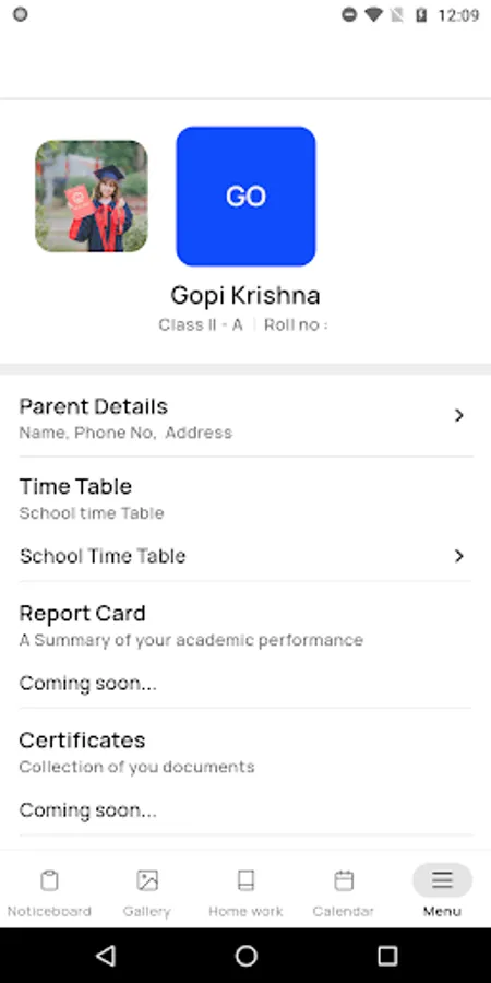 Please Note: If you have one or more students studying in the same school and the same mobile number has been entered in the school record for all of them, you can access data for all of them by tapping the student name on the main menu.