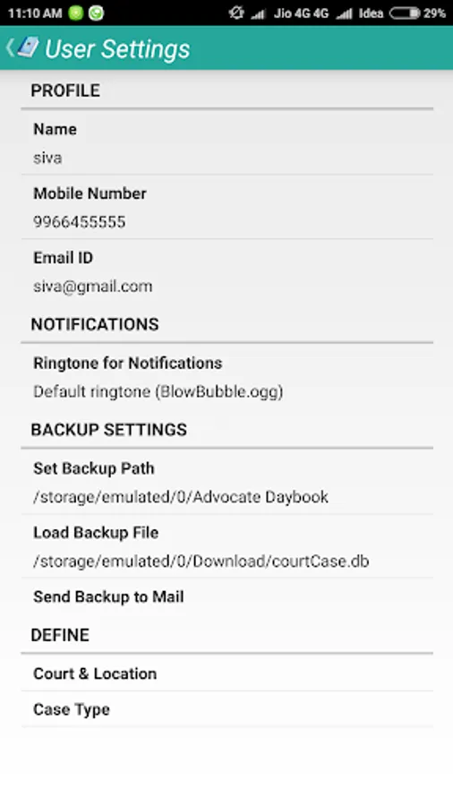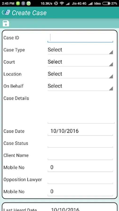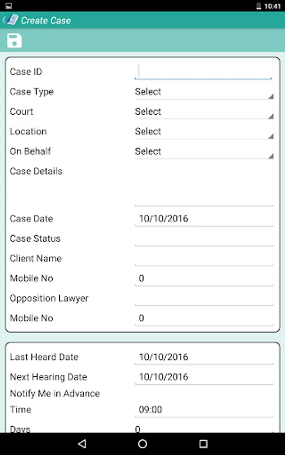 The main features are Maintain Case, Check running and Closed Cases, Notification, Follow-ups with in-app reminder, Auto SMS to clients,Backup and Restore data, Date Filter. A smart and easy way to search cases. Manage unlimited cases without any restriction. Managing data offline.
