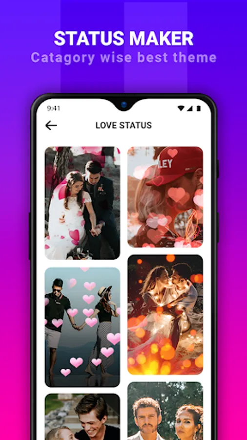 ❤ Select a video from collection of 10 category like love,sad,festival,etc....