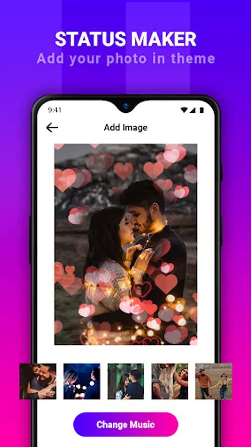 ❤ Create your video status in more unique way by using your photos in video with Music.