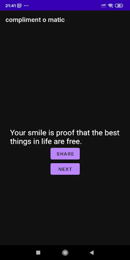 The Compliment-o-matic is the compliment app. Compliment-o-matic speaks the compliement becoz you earn it .