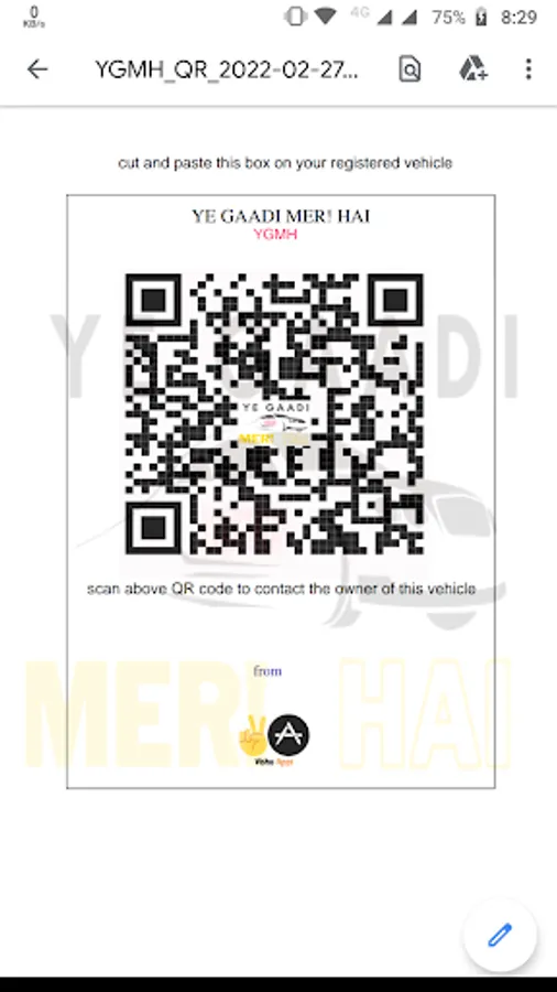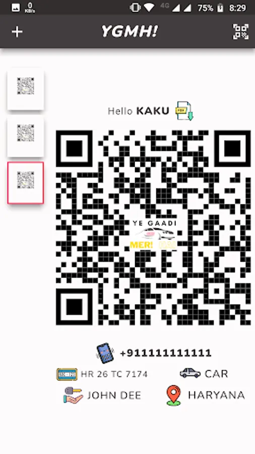 Get QR code of your registered vehicle and paste it onto your vehicle(Gaadi) so that people can know about you and your vehicle that helps you and others if any vehicle is lost or is parked in the middle of the road or in no parking area.