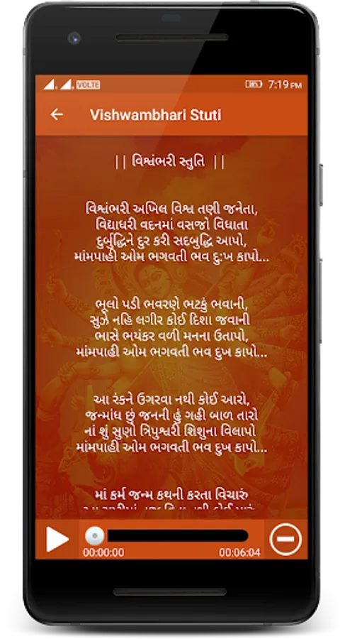 - Audio mode allows you to listen and read the Vishwambhari Stuti