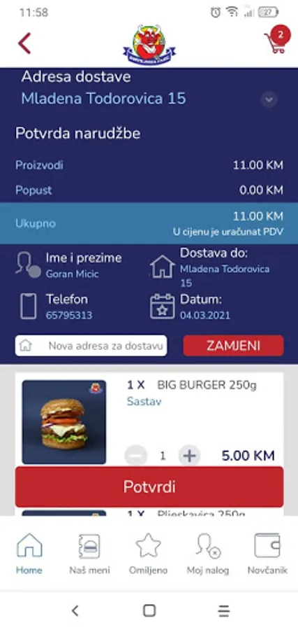 Highlight your favorite dishes and quickly order what you like best. See the last order at any time. Keep track of whether your order has been received and when it is headed for you.