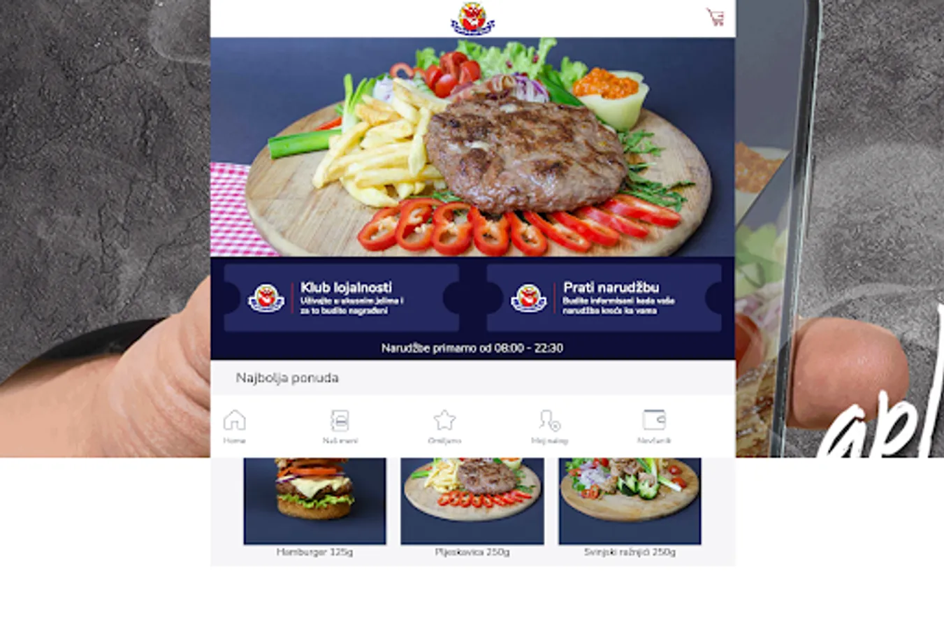 Food delivery application. Order your favorite grilled dish with just one click. The first application for fast food delivery.