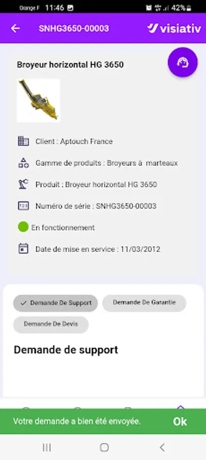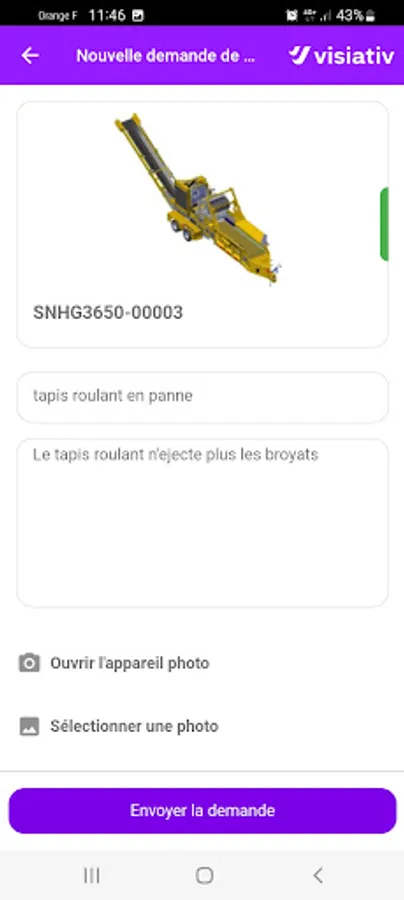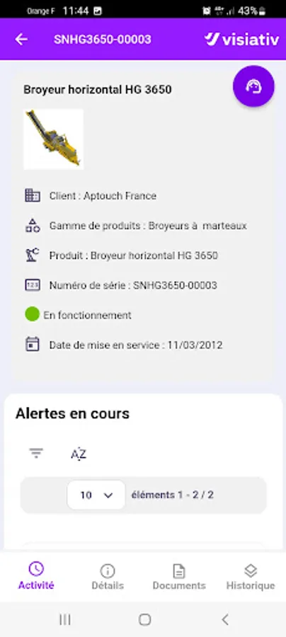 The application shows you all the activity, interventions and documentation relating to your equipment on your mobile.